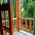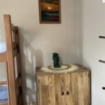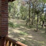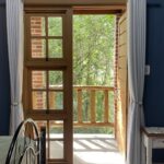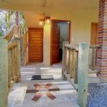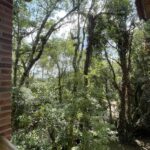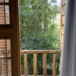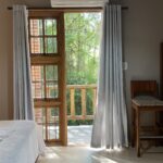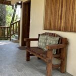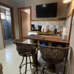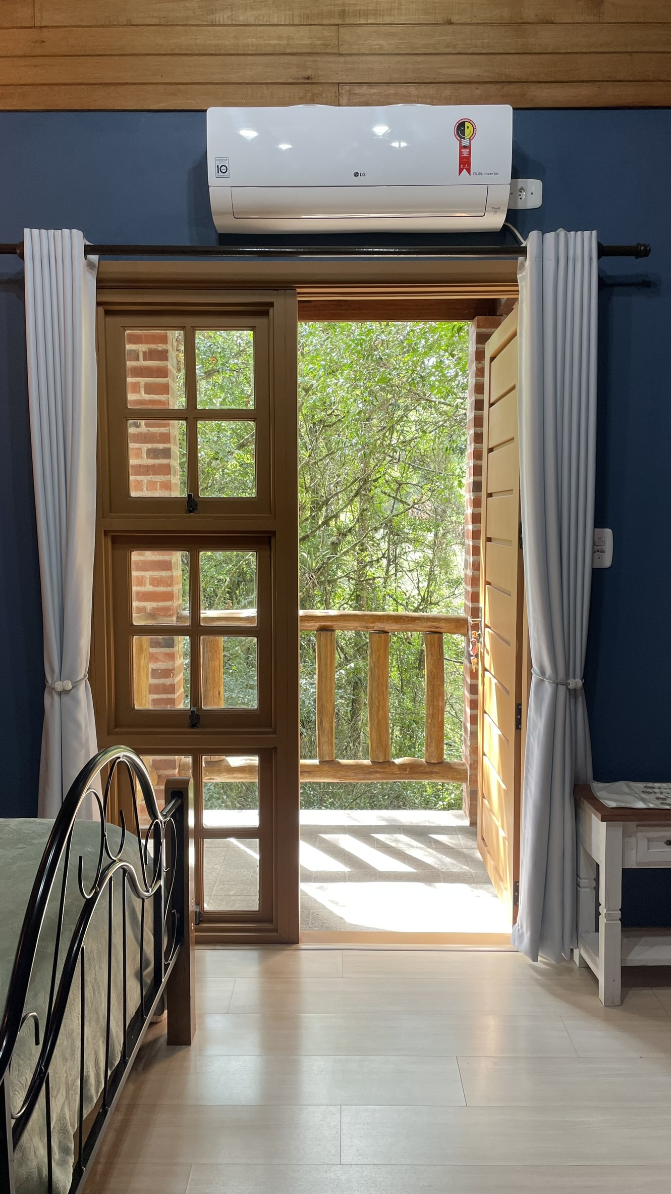 Cabana familiar térrea, que acomoda até 4 pessoas, possui 1 quarto com ar condicionado, com 1 cama de casal e 1 beliche, cozinha equipada com frigobar, cafeteira, air fryer, torradeira, jarra elétrica, microondas, além de lindas louças para suas refeições, a cabana conta com sofá e TV na sala, além de sacadas com lindas vistas para o verde.